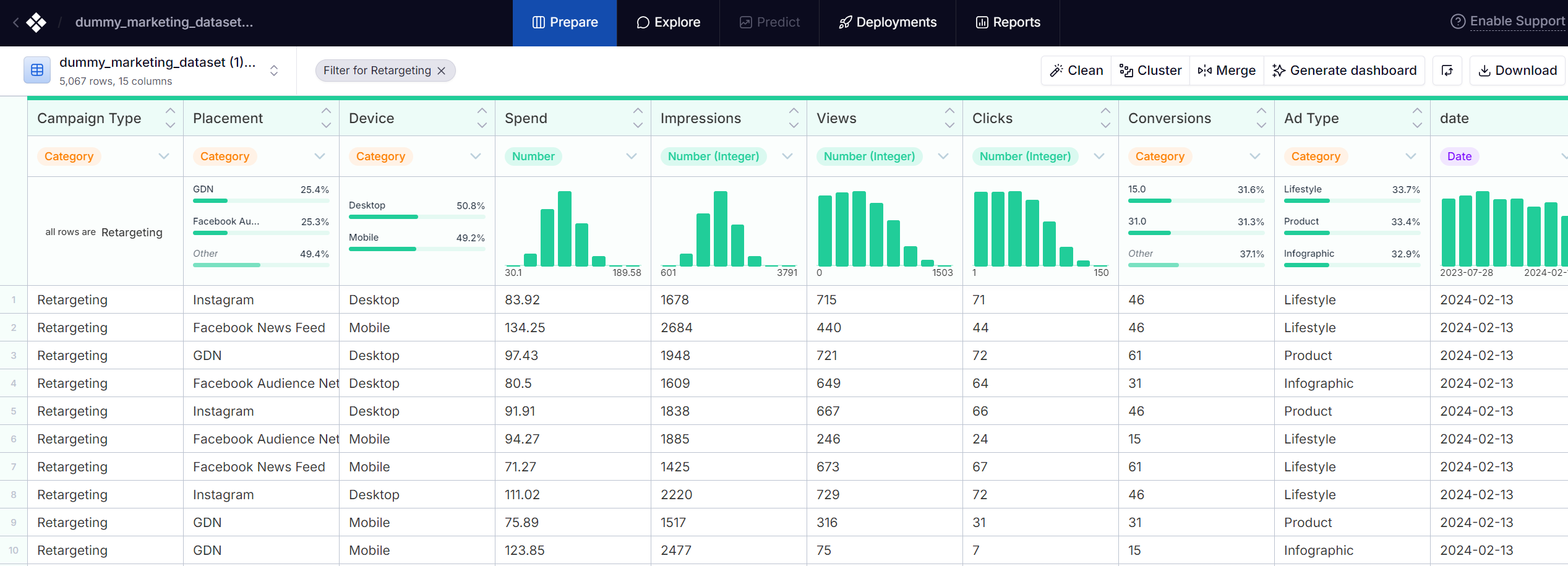 Once the data has been prepared and cleaned, you can deploy the transformations to automate the process for future datasets.<br>