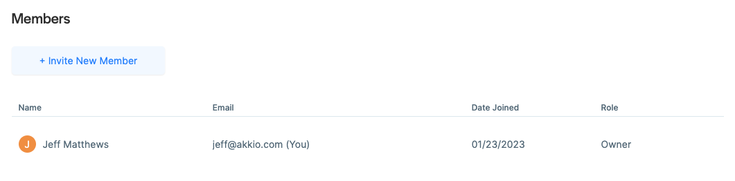 For more details on the different Member roles, see our [Role Based Access Control](https://docs.akkio.com/akkio-docs/settings/role-based-access-control) page.